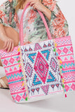 BOHO PRINT FRINGE TOTE BAG