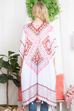 • BOHO TRIBAL PRINT TASSEL OPEN FRONT KIMONO