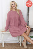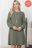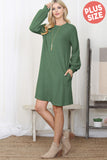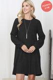 This Brushed Waffle Bubble Sleeve Pocket Dress is a stylish and versatile option for any wardrobe. It's designed with pockets and bubble sleeves for added comfort and convenience, and is made with a brushed waffle fabric for a soft and comfortable feel.