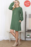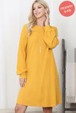 Brushed Waffle Bubble Sleeve Pocket Dress