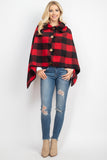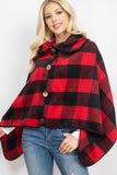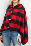 • BUFFALO PLAID WITH BIG BUTTON ACCENT PONCHO