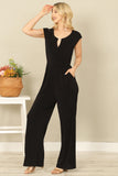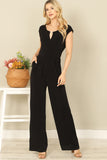 Stay stylish and comfortable with our CAP SLEEVE KEYHOLE DETAIL SIDE POCKET SOLID JUMPSUIT. Perfect for any occasion, this jumpsuit features a flattering cap sleeve, keyhole detail, and convenient side pockets. A versatile and must-have addition to your wardrobe.