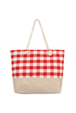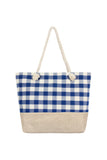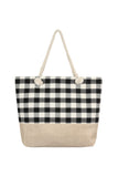 STITCHED PLAID PATTERN TOTE BAG