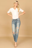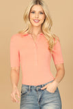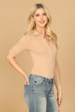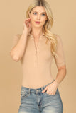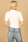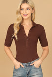COLLARED BUTTON HALF RIBBED BODYSUIT