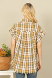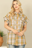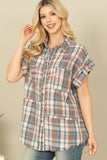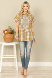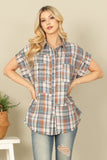 This collared plaid top features cuffed sleeves, a front pocket, and a trendy plaid print. It's perfect for any occasion, whether dressing up for work or keeping it casual on the weekends. The soft fabric ensures comfort while the stylish design adds a touch of sophistication to any outfit.