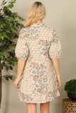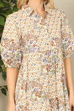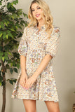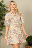 Unleash your feminine charm with our Collared Half Puff Sleeve Printed Mini Dress. Featuring a flattering collar and playful puff sleeves, this dress is perfect for any occasion. The vibrant print adds a touch of fun, while the mini length shows off your legs. Get ready to turn heads and feel confident in this must-have dress.
