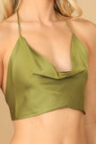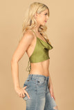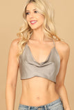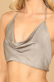 Elevate your style with our versatile Cowl Neck Tie Back Satiny Crop Top. The luxurious satiny fabric and elegant cowl neck create a flattering silhouette, while the tie back adds a touch of playful charm. Perfect for any occasion, this top promises comfort and sophistication all in one.