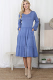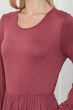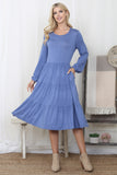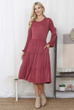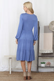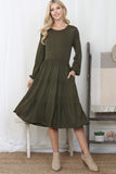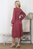 Crepe Long Sleeve Elastic Waist Tiered Dress