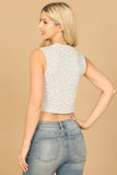 CREW NECK SLEEVELESS LEOPARD CROP TOP