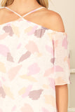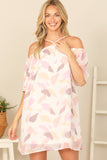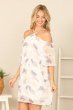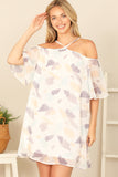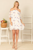 CROSS NECK OFF SHOULDER PRINTED MINI DRESS