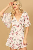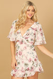 DEEP NECK RUFFLE DETAIL SIDE CUT-OUT MINI DRESS