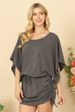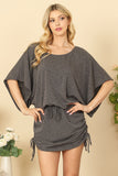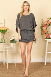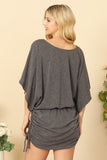 DOLMAN SLEEVE WAIST TIE RUCHED SIDE MINI DRESS