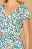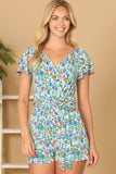DOUBLE RUFFLE SLEEVE SURPLICE NECK WAIST TIE DITSY ROMPER