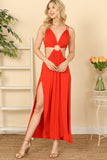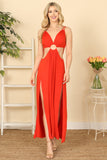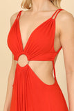 Double Strap Ring Front Cut-Out M-Slit Backless Maxi Dress