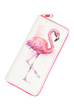 Stay organized and stylish with our Flamingo Leather Zipper Wallet. Made of durable leather, this wallet features a secure zipper closure and a charming flamingo design. Perfect for keeping your cards, cash, and coins safe and easily accessible. A must-have accessory for any fashion-forward individual.