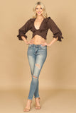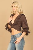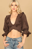 FLOUNCE SLEEVE PLUNGING EYELET RUFFLE CROP TOP