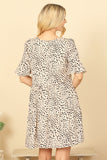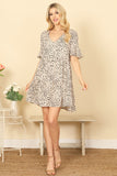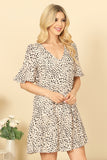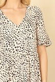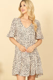 FLOUNCE SLEEVE V-NECK ANIMAL PRINT MINI BLACK
