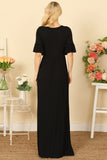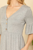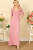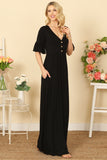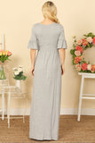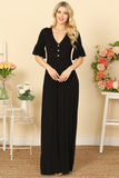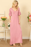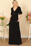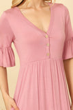 FLOUNCE SLEEVE V-NECK BUTTON DETAIL SIDE POCKET SOLID MAXI DRESS