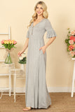 Experience comfort and elegance in our Flounce Sleeve V-Neck Button Detail Side Pocket Solid Maxi Dress. With its flounce sleeves and v-neck design, this dress adds a touch of femininity to your wardrobe. The button details and side pockets offer functionality, making it the perfect dress for any occasion.