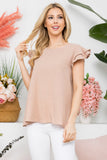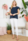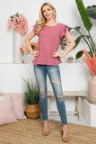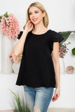 Ruffle detail top featuring a round neckline, short sleeve, and a flowy silhouette. Whether you slip into boyfriend jeans and lace-up sneakers for a casual look or booties and dangling earrings for a dressy ensemble, you’ll look effortlessly stylish!