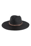 PANAMA BRIM SUMMER HAT WITH CHAIN ACCENT