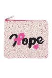• HOPE PINK RIBBON AWARENESS SEED BEADS COIN POUCH