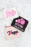 HOPE PINK RIBBON AWARENESS SEED BEADS COIN POUCH