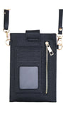 Skip the bulky bag, but still have everything you need when you carry your phone, keys, wallet and more in this flat vegan leather crossbody. This faux-leather crossbody bag features a sleek or ostrich embossed and shiny gold hardware for a clean, sophisticated look that goes with everything from a basic tee and jeans to a shift dress and heels. Its removable strap makes it easy to carry alone or throw into other purses.