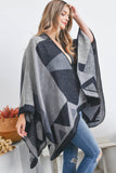 OPEN FRONT GEOMETRIC SHAPE PRINT RUANA WRAP KIMONO