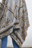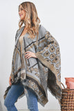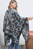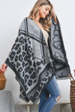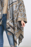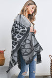 OPEN FRONT LEOPARD LINE PATTERN FRINGE RUANA WRAP KIMONO