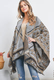 Wrap yourself up in a versatile cold-weather staple with this soft long line poncho. It features an airy silhouette, batwing sleeves, and a fringed hem for added detail. Style it with skinny jeans, a blouse, and knee-high boots for a chic cool-weather twist.