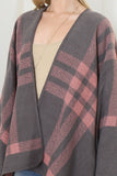 PLAID KNIT WARMER OPEN FRONT KIMONO