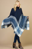 PLAID KNITTED TURTLEKNECK PONCHO
