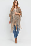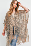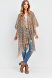 SEMI SEE THROUGH LEOPARD PRINT FRINGE KIMONO