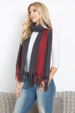 STRIPED KNIT FRINGE WARMER SCARF WRAP