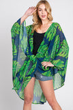 TROPICAL LEAVES PRINT SHAWL COVER-UP