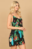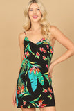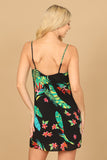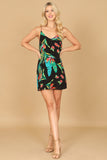 TROPICAL SPAGHETTI STRAP V-NECK MINI DRESS