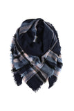NAVY BLANKET FRINGED SCARF
