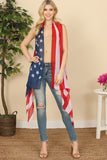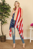 Stylish semi-sheer American Flag print kimonos crafted from light-weight semi-sheer woven! Featuring a relaxed fit and all-around stars and stripes print. Wear over any simple tees or as a cover-up over swimsuits on a beach day.