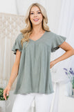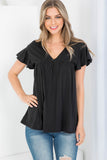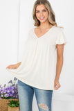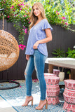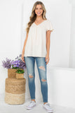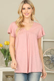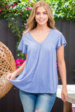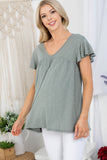 This V-Neck Shirring Details Slub Top is both comfortable and stylish. With its flattering v-neck and shirring details, it's perfect for any occasion. The slub material adds a touch of texture, making it a versatile addition to any wardrobe. Stay on-trend and feel confident in this must-have top.
