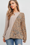 A casual relaxed-fit sweater featuring a round neckline and a half print cuff long sleeves with a twist of the cold shoulder for a trendy look. It can be dressed up with booties for a night out or with your favorite sneakers for a casual day out.