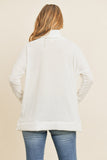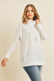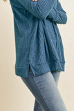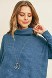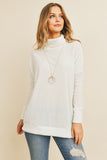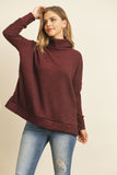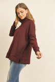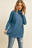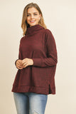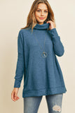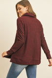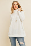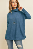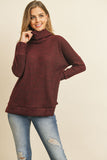 Waffle Cowl Neck Side Slit Sweater
