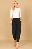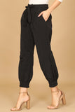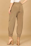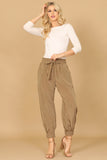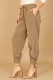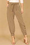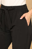 WAIST TIE GARTERIZED HEM SOLID PANTS