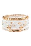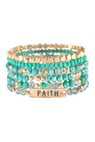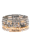 Cute and chic stretch bracelets adorned with multiple beads and a blissful engraved message in a finished lariat bar. You can mix n' match to create a unique arm candy collection or wear solo.