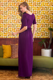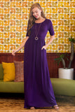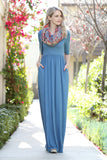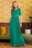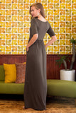 Half Sleeve Scoop Neck Pocket Maxi Dress