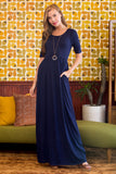 Get ready for spring wearing this super relaxed fit maxi dress! This soft classic staple features a scooped neckline, half sleeves, on-seam pockets and an elasticized waist line. Pair along with your favorite sandals/wedges for a casual look or your favorite heels for a night out.
