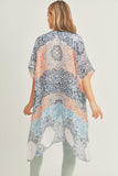 This beautiful kimono features an all-over mixed print, adding a pop of color and style to any outfit. Lightweight and comfortable, it's perfect for layering and adding a touch of personality to your wardrobe. Elevate your look with this versatile piece.