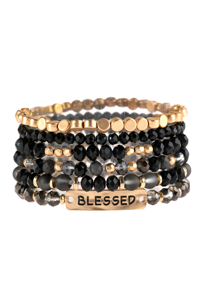 "BLESSED" CHARM MIXED BEADS BRACELET