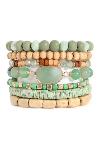 CHARM LAYERED WOOD, FIMO, RONDELLE MIX BEADS STACKABLE BRACELET