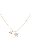 CUBIC ZIRCONIA 2 STAR PENDANT CHARM BRASS NECKLACE